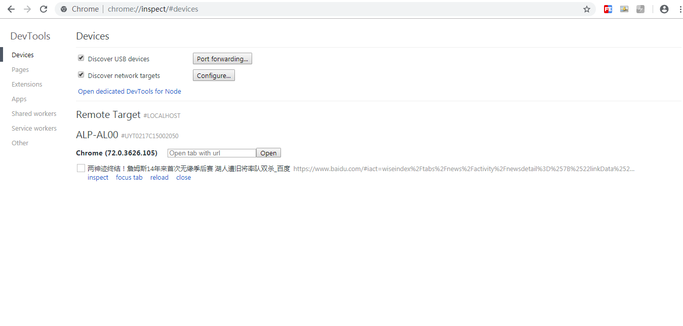 chrome://inspect/#devices 是一个内置于chrome的远程调试指令,在使用之前请确保您的浏览器能够能够访问https://chrome-devtools-frontend.appspot.com (您可能需要架梯子,远程调试需向该连接获取数据)