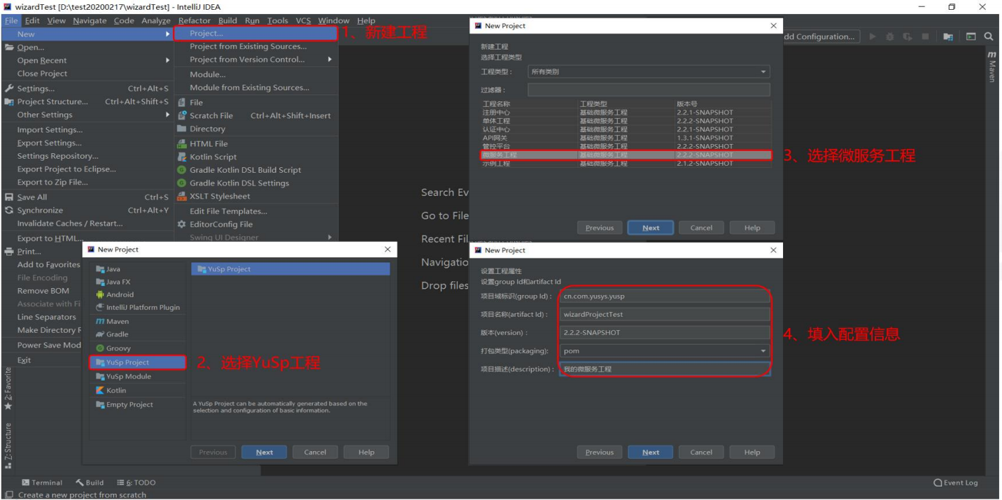 为创建基于宇信统一服务平台的项目和模块,提供向导式的可视化配置界面