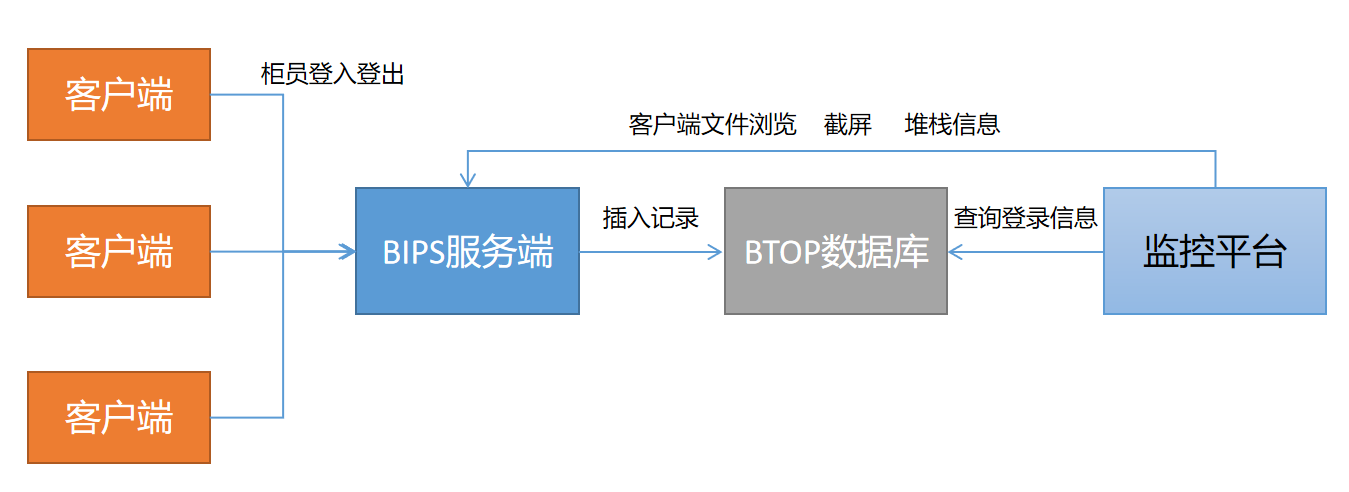 柜员在客户端登录时,通过BIPS向数据库记录登录登出信息
